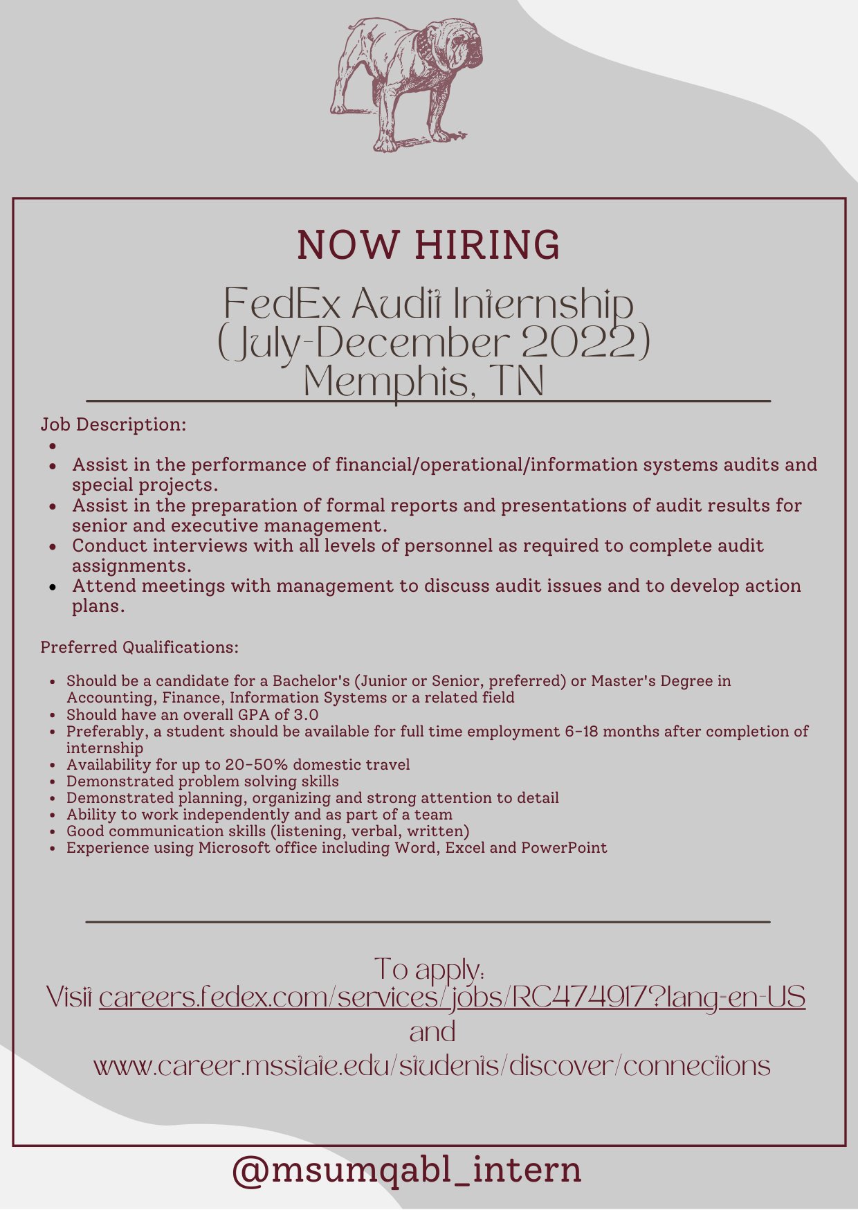 Msu Mqabl Internships On Twitter Audit Internship With Fedex This Will Be Located In Memphis Tn From July December 2022 No Doubt That This Opportunity Will Pay Off In The Long Run To Apply